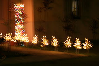 Lots of HANGING lights - I can't imagine how long it took to decorate the campus.  (A LONG TIME) but it was beautiful.  It's secretly how I wish my own yard looked....(well, it's not a secret since I just put it on a blog)   But I don't think it's possible to have "too many Christmas lights"  -  really, I don't.